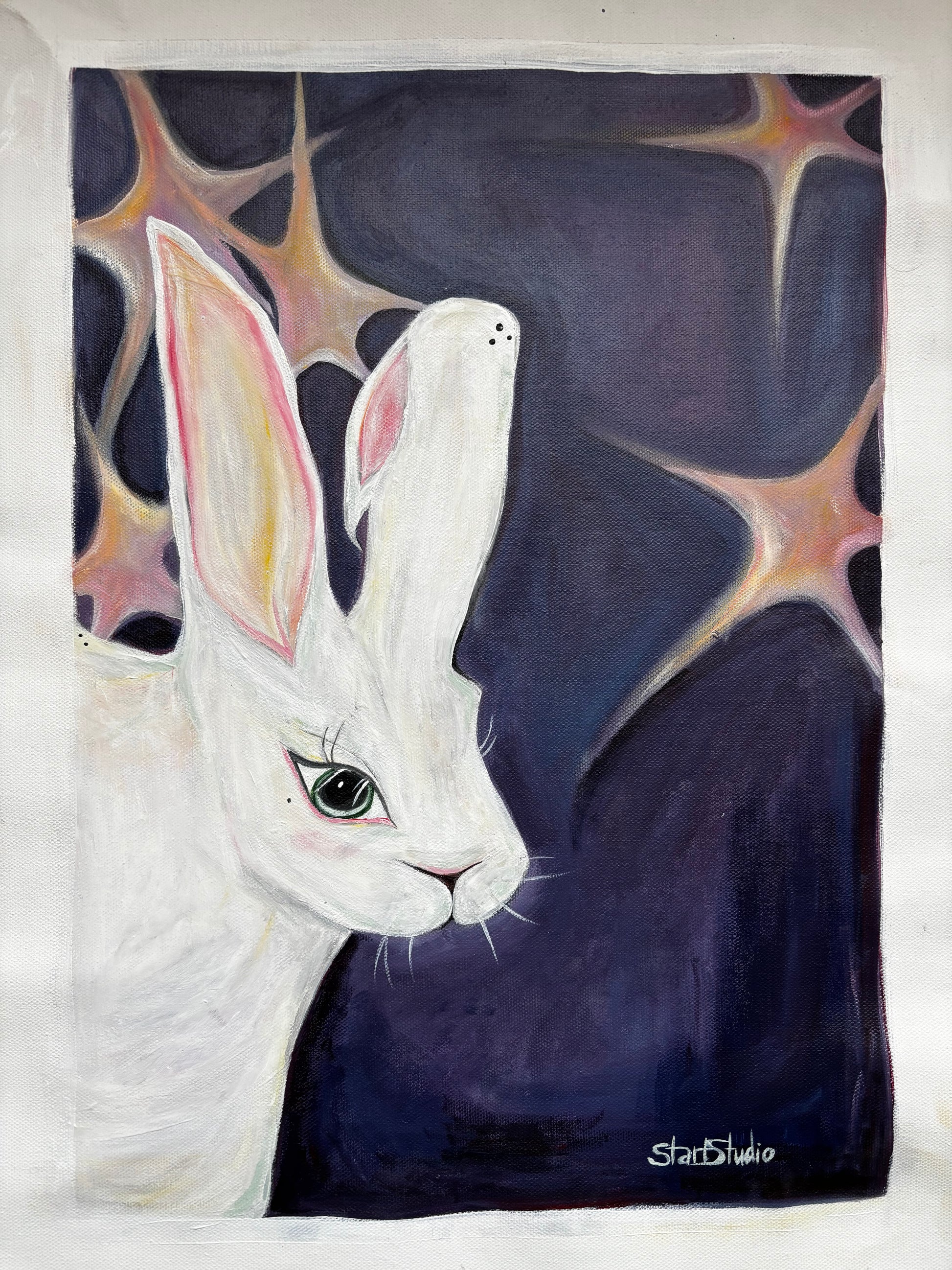 acrylic paint and oil pastels on canvas